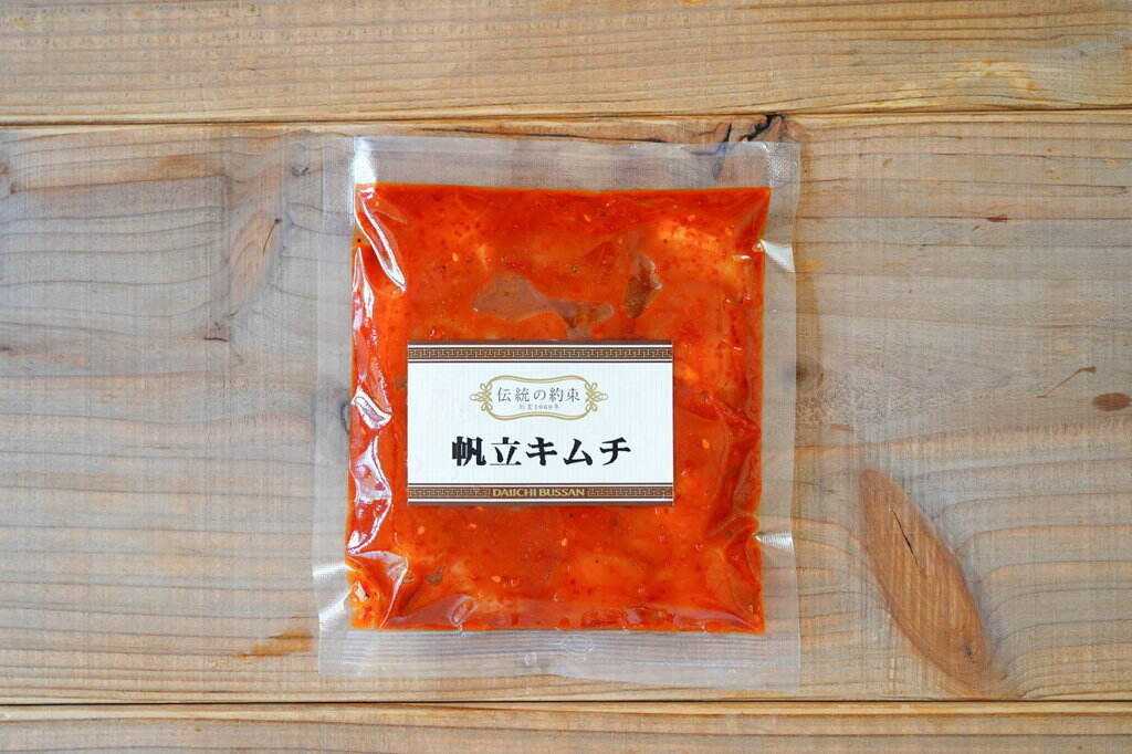 厳選した国産のホタテを、秘伝のヤンニョムで一粒一粒丁寧に漬けた「帆立キムチ」。