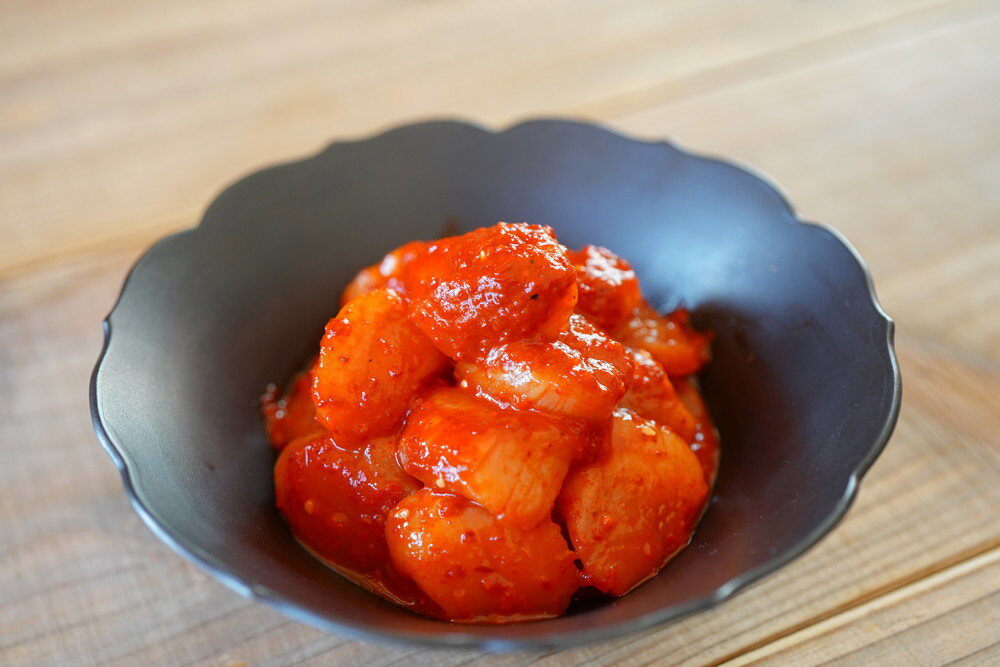 手作りだからこそ、その季節の野菜に合わせて塩加減やヤンニョムを変え、おいしく発酵するキムチが漬けられているのです。