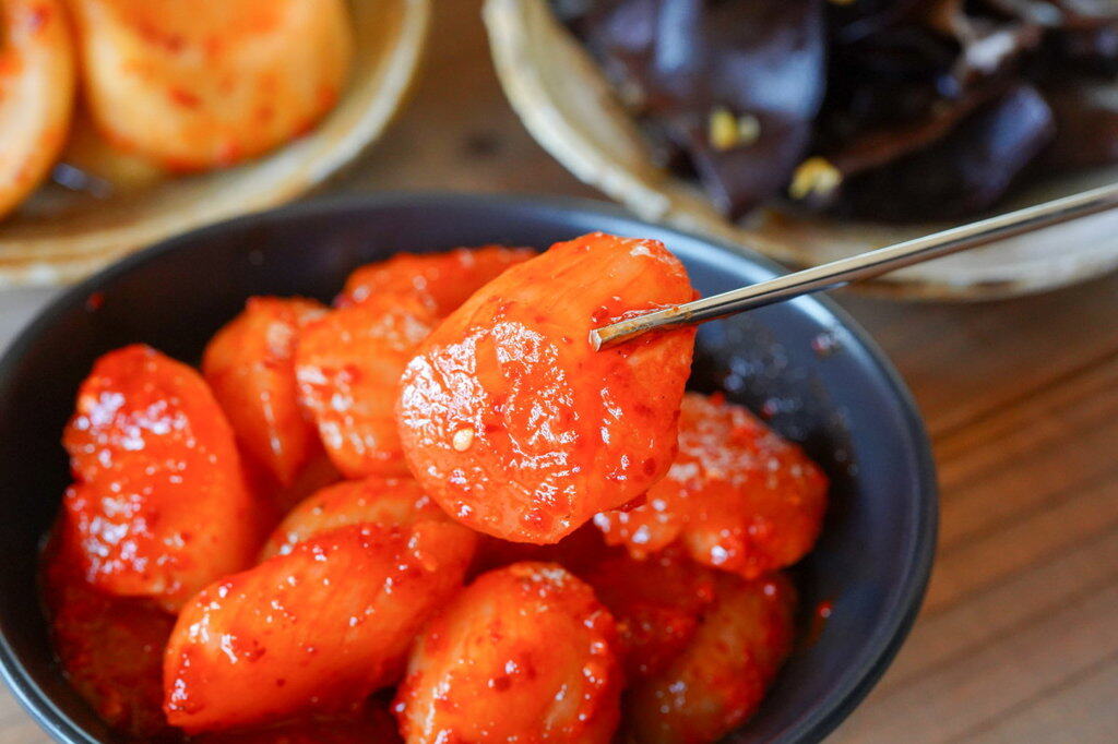 季節ごとの素材の違いや天候の変化などに合わせ、細かな調合で漬けることができるのは代々伝わる伝統製法とキムチ職人の技、そして代々受け継がれてきた想いがあるからこそ。